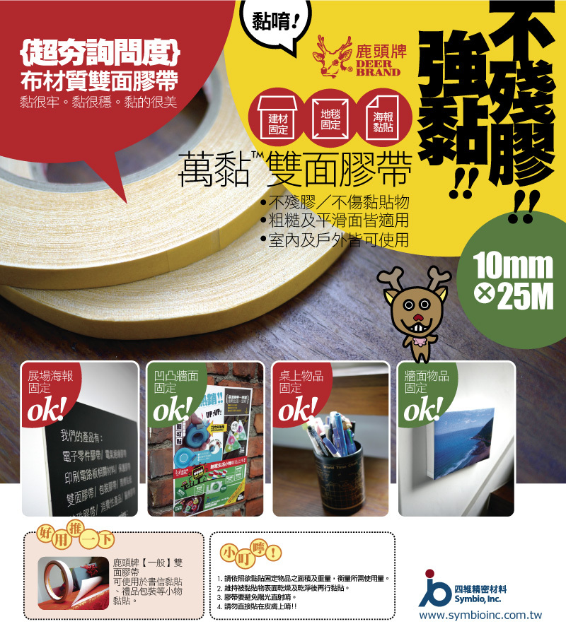 四維 鹿頭牌 4P17B 棉布萬黏雙面膠帶 10mm X 5M (2捲入) / 個