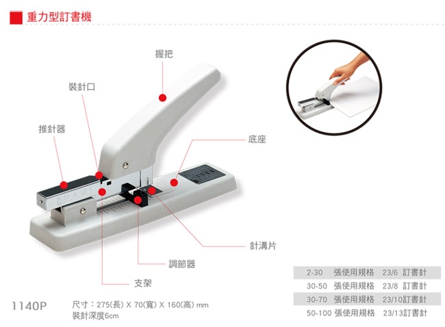 產品名稱: SDI手牌 1140P 重力型釘書機 / 支