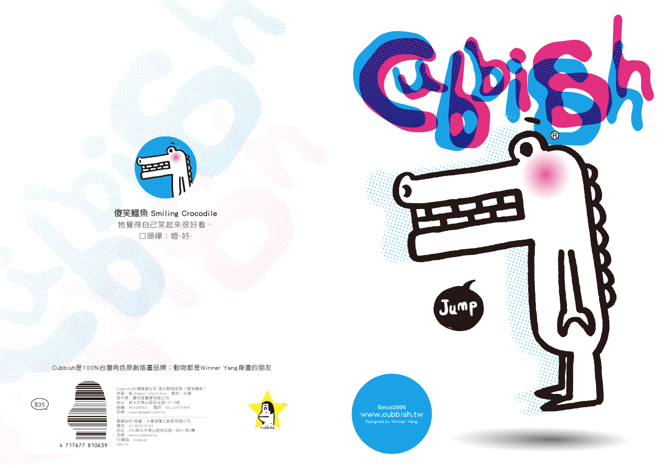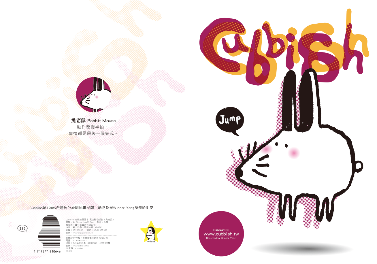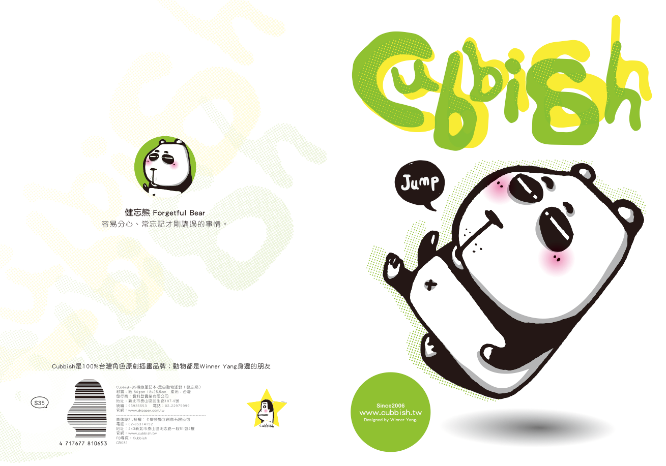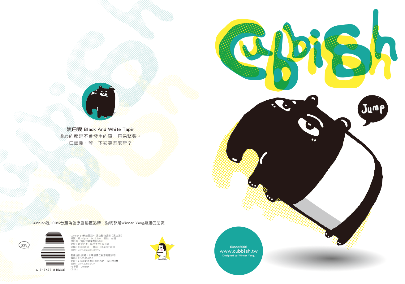 產品名稱: Cubbish B5膠裝左開筆記本-黑白動物派對 橫線(4款) /本 CB079