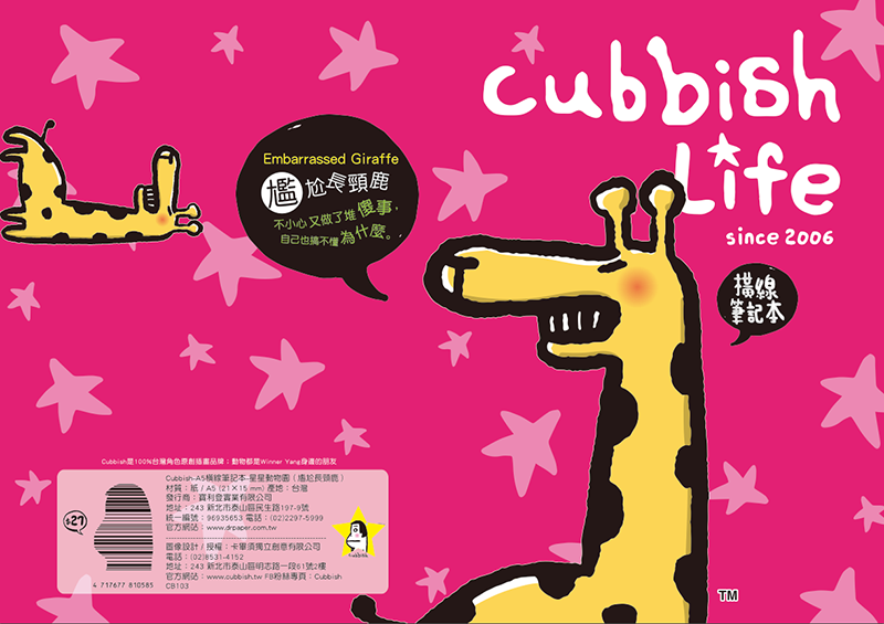 產品名稱: Cubbish A5膠裝左開筆記本-星星動物園系列 橫線(4款) /本 CB100