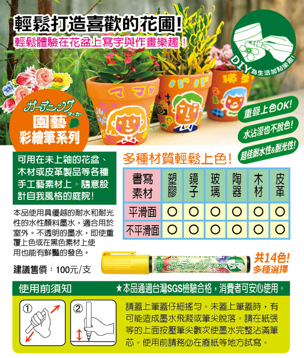 ◎特色:多種材質輕鬆上色(塑膠、鏡子、玻璃、陶器、木材、皮革)