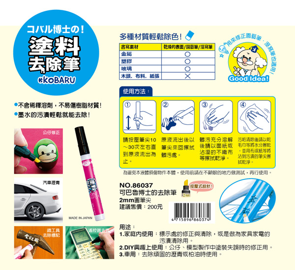 ◎去除筆特色:溼寫&擦除一次搞定!多種材質輕鬆除色!