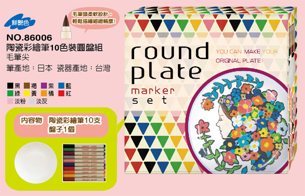 ◎品名:Kobaru可巴魯 NO.86006 陶瓷彩繪筆10色裝圓盤組